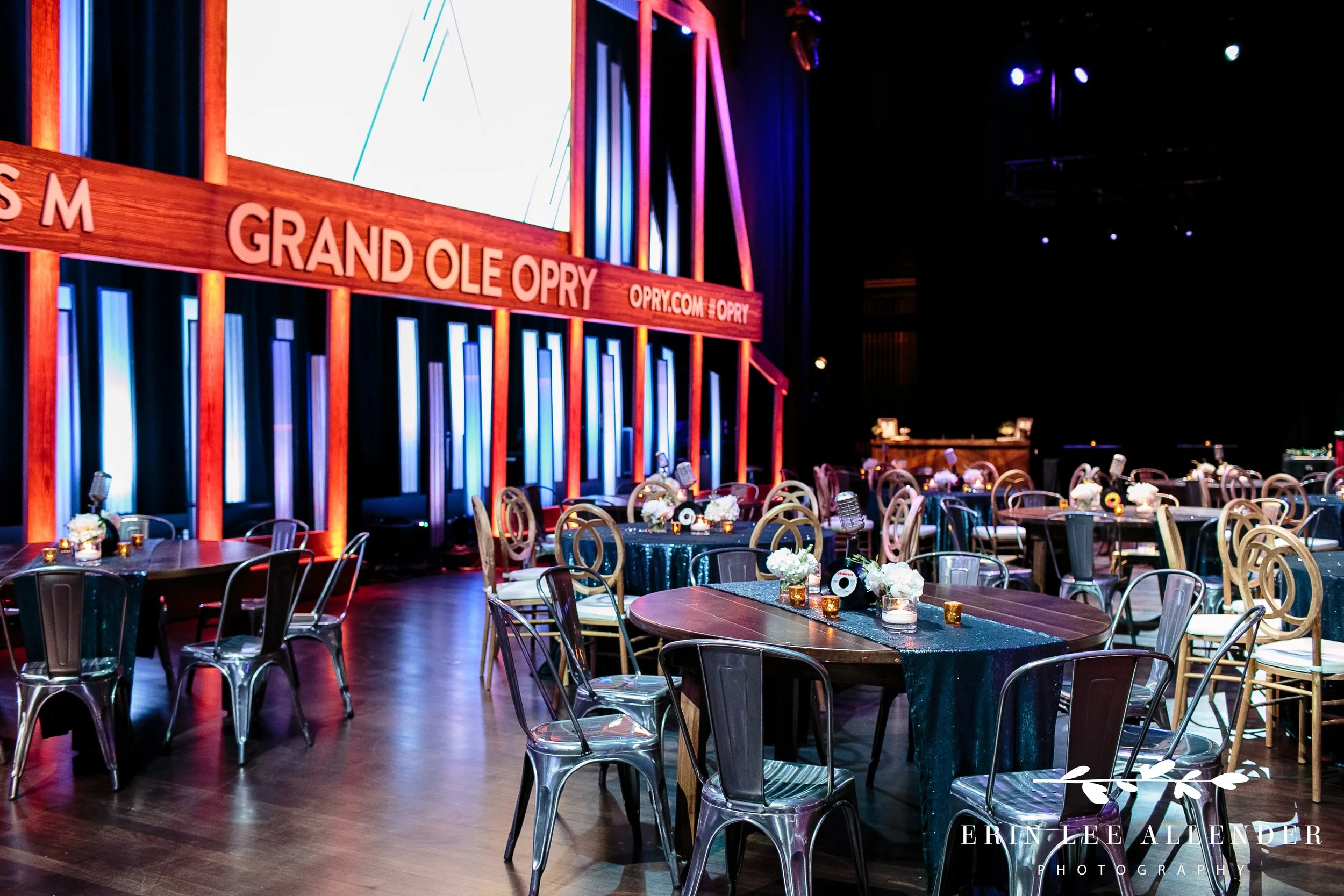 Dinners like this are about paying attention to how everything comes together—lighting, layout, and detail—so that the images reflect the environment as it was experienced. Working in a space like the Opry means balancing existing light with event design while keeping compositions clean and consistent throughout the room.